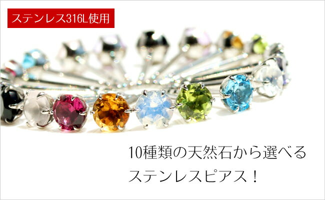 )10種類の天然石から選べるステンレスピアス! 【金属アレルギー対応】カラージュエル×ステンレス316Lピアス・ニック 金属アレルギーだから・・と あきらめていたあなたへ! ネットショップでもまだ取り扱いしているお店が少ない、 「ステンレス316L」のピアスが当店初入荷! 18金でもプラチナでも 調子が悪いときはかぶれたり、 アレルギー反応が出てしまう。