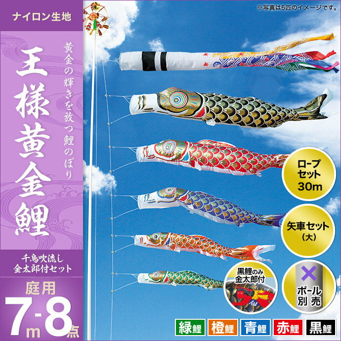 おすすめポイント!●飾る場所・・・お庭用 矢車・ロープ付き(ポール別売り)●セット種類・・・7m5匹セット:7mとは、黒鯉・吹流しの大きさです。