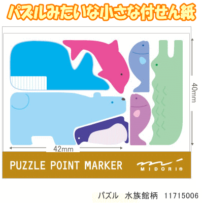 商品名 付せん紙 パズル (パズルみたいな小さな付箋紙) 品番 11714006 動物柄 /11715006 水族館柄/11716006 イヌ柄 サイズ パッケージサイズ:H103×W76×D4mm シールサイズ 大:約)H38〜30×W20〜18mm/小H18×W7mm(使用時) 仕様 7デザイン×10枚 メーカー midori ミドリ 株式会社デザインフィル 小さいので手帳にピッタリ!持ち運びにも便利です。